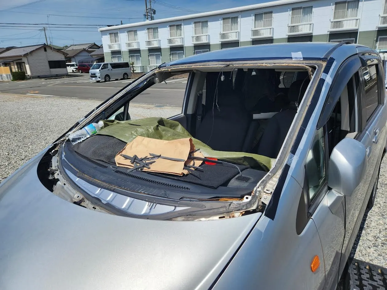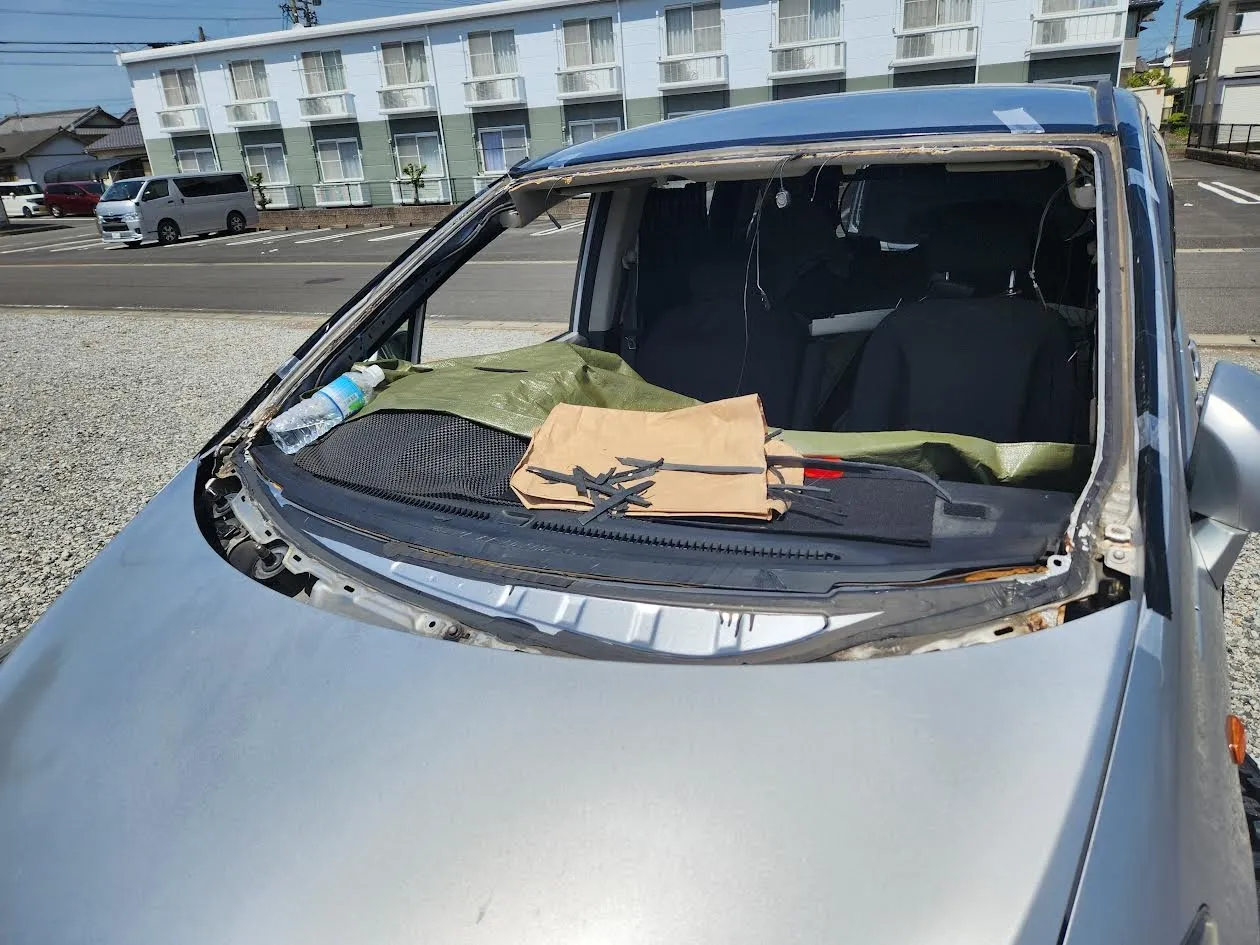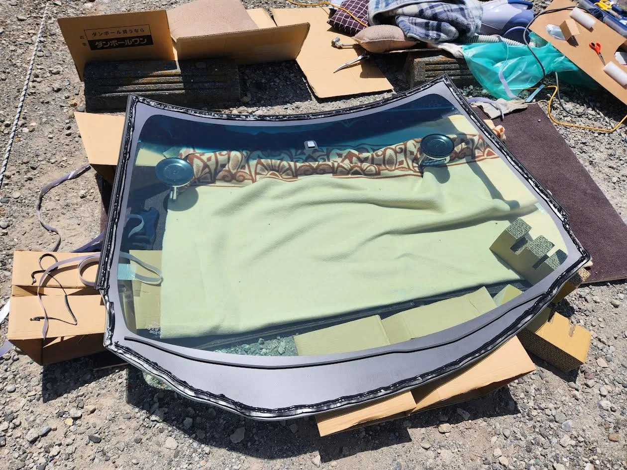 自動車のフロントガラス交換手伝い ガラス取り外し